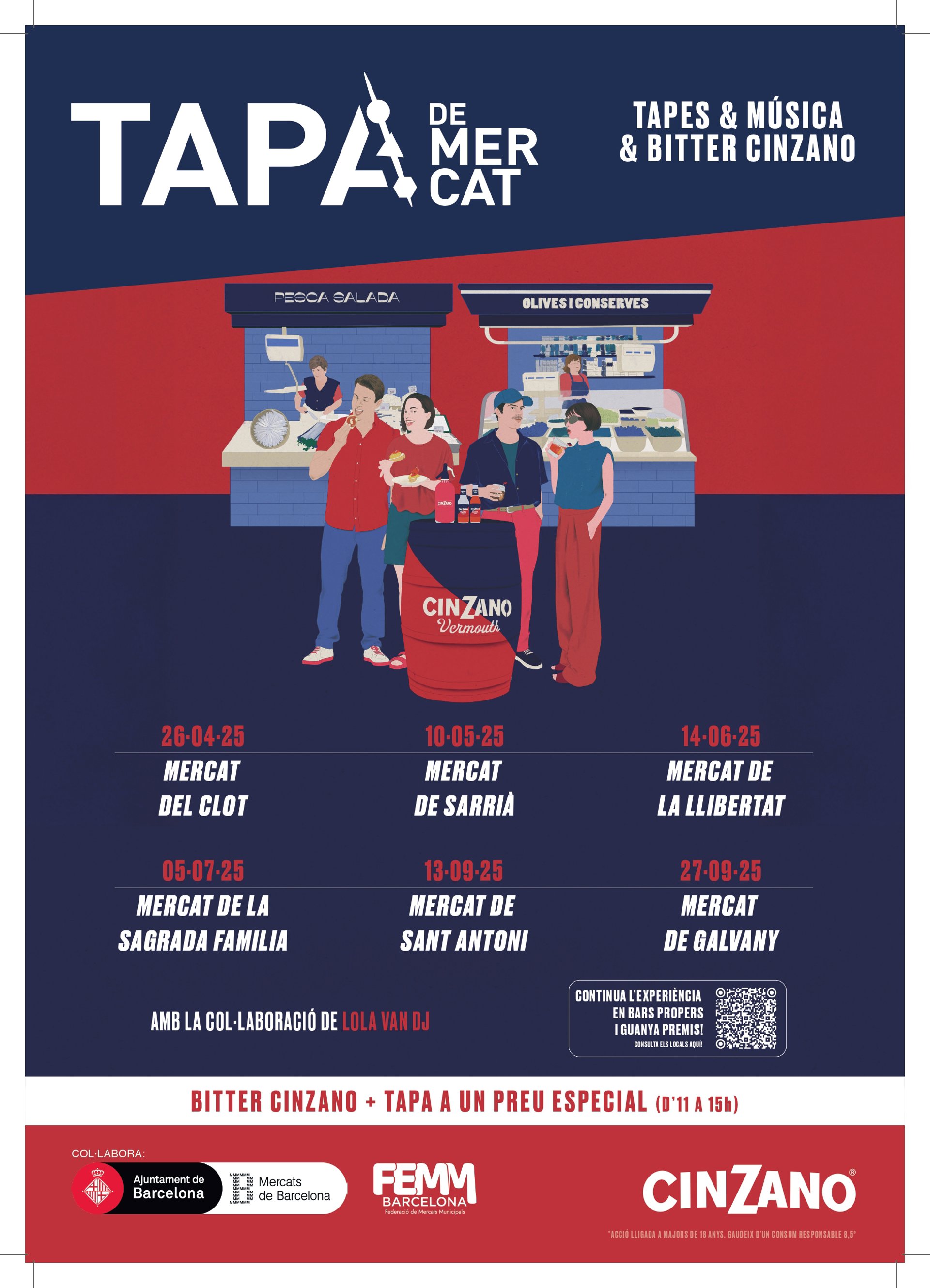 Este año, la Tapa del Mercat 2025 se extenderá durante varios fines de semana y contará con actividades en distintos mercados de la ciudad en los que icónicos locales ofrecerán un Bitter Cinzano junto a una exquisita tapa a un precio especial. Además, los participantes no se irán con las manos vacías porque habrá diferentes premios.