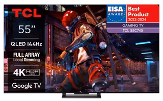 - TCL QLED 4K TV 55C745, honrado como ganador del premio EISA 'GAMING TV 2023-2024', se erige como la mejor opción para juegos en la última generación de consolas. De hecho, combina colores espectaculares QLED, contraste Full Array Local Dimming y brillo máximo con las últimas funciones de juego. Game Master 2.0, HDMI 2.1, ALLM, 144Hz VRR, FreeSync Premium Pro, TCL Game bar, 240Hz Game Accelerator que llevan la experiencia de juego al siguiente nivel. Gracias a eso el TCL 55C745 puede adaptarse a cualquier fuente de juego. Junto con la tecnología AMD FreeSync que promete un juego fluido y sin artefactos en casi cualquier velocidad de fotogramas, los usuarios pueden esperar el próximo avance en los juegos de consola.