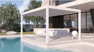 Pérgolas bioclimáticas y cortinas deslizantes que permiten el confort con vistas y el aislamiento del calor
