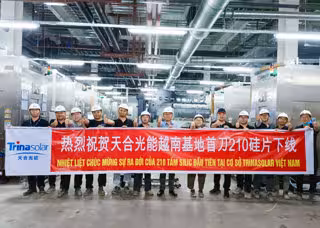 CHANGZHOU, China, 25 de agosto de 2023/PRNewswire/ -- Trina Solar ha vuelto a ampliar su presencia internacional con la producción de obleas de silicio monocristalino de 210 mm en Vietnam. Las primeras obleas salieron de la línea de producción de la fábrica de la ciudad de Thai Nguyen, a 80 kilómetros al norte de Hanoi, el 23 de agosto. La fábrica podrá producir 6,5 GW de obleas al año. Con esta nueva capacidad, Trina Solar tendrá mayor flexibilidad para poder entregar sus productos en todo el mundo.