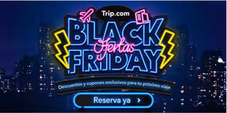 Ofertas de hasta un 30% en vuelos, hoteles y trenes, además de cupones descuento de 20 euros durante la campaña Black Friday de Trip.com que se llevará a cabo del 22 al 29 de noviembre.
