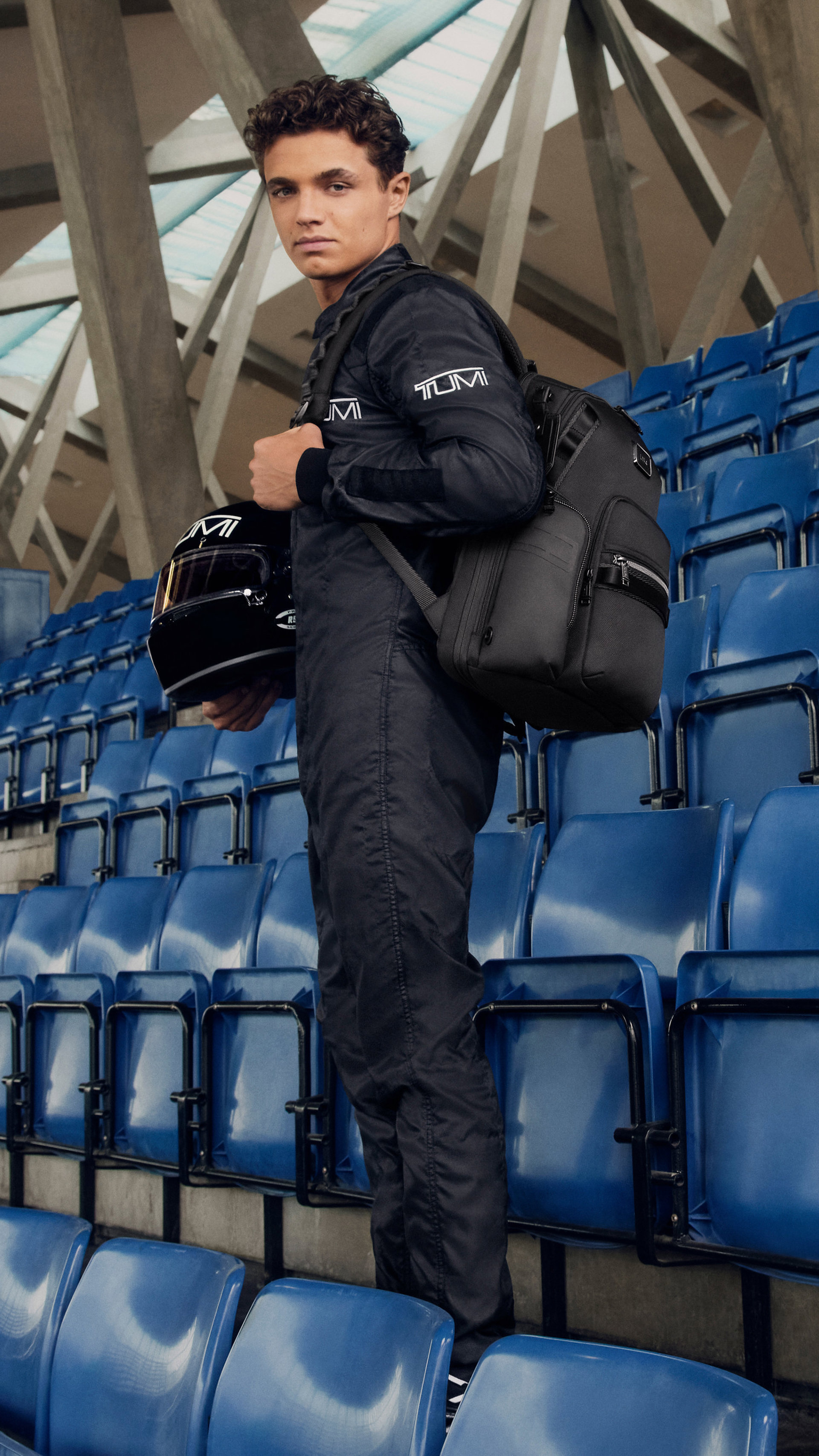 Leading global luxury travel brand TUMI teams up with F1 superstar Lando Norris to kick off the "TUMI Alpha Bravo: Life in Forward Motion" campaign series to accompany the debut of over fifty new styles within their Alpha Bravo collection. Lando is seen - TUMI/PR NEWSWIRE