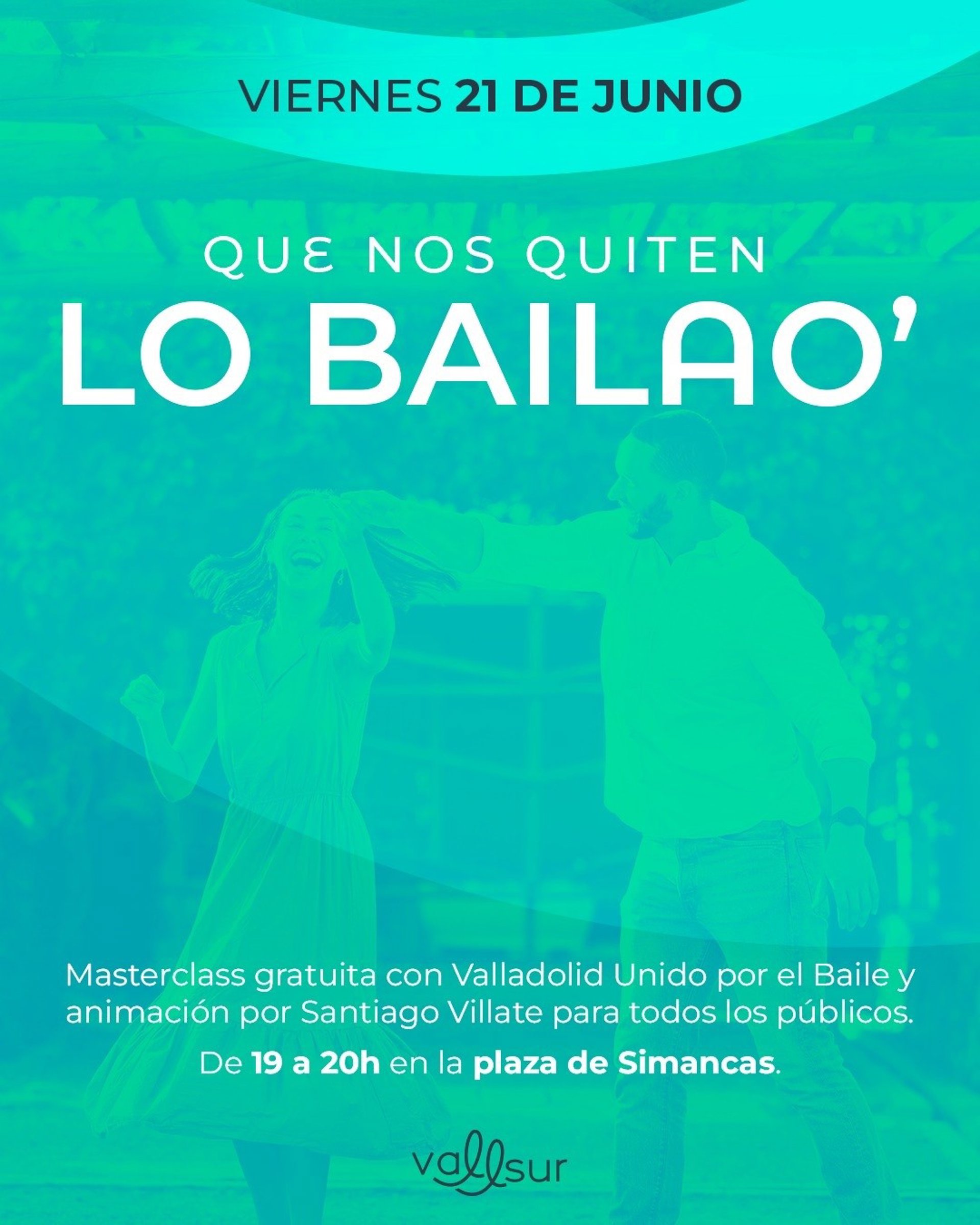 · El día 21 de junio tendrá lugar un gran evento de baile en la Plaza de Simancas de Vallsur, dirigido por la Asociación ‘Valladolid Unido por el Baile’
