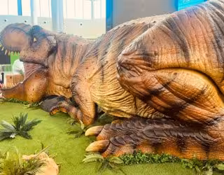 Este T-Rex podrá admirarse tanto por fuera como por dentro, ya que está reproducido su esqueleto. Se podrá vivir la sensación de adentrarse en la boca de este carnívoro tan temido y recorrer su estructura ósea por dentro, en un entorno que simula su hábitat natural.
