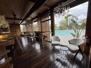 Con una decoración ecléctica, el nuevo establecimiento cuenta con una amplia superficie de 160 m, once empleados y con capacidad para 82 comensales. La zona interior, con un ambiente y decoración moderno, cuenta con un largo sofá Chester de nueve metros y toda una zona dinámica en madera maciza. El exterior, con tintes de chiringuito de ciudad moderno y vintage, tiene una amplia terraza envolvente, decorada con obras de artistas vallisoletanos por un lado, y por otro con grandes espacios acristalados y ornamentación natural.