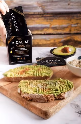 Vidalim es un nuevo complemento alimenticio con ácidos grasos esenciales Omega3 DHA de microalgas en sobres monodosis con aceite de oliva virgen extra, apto para veganos, celíacos e intolerantes al pescado y la lactosa. Su objetivo es contribuir a mejorar la salud y vitalidad de sus consumidores durante todas las etapas de su vida, desde el embarazo, mediante un formato cómodo y funcional.