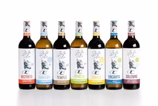 El vino es un homenaje las mujeres de la familia, con nombres tan atrevidos como Coraje, Carisma, Instinto, Solemne, Alegria, Temple o Pureza. Contando con etiquetas cuidadas y desenfadadas. Los premios ganados reconocen la buena química entre el departamento de marketing y sus enólogos.