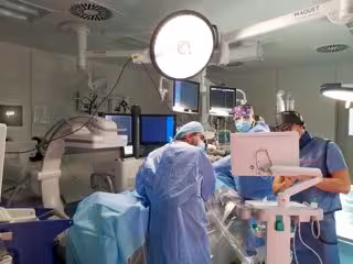 El jefe del Servicio, el doctor Antonio Orgaz, junto al doctor Ángel Flores y su equipo, han liderado este primer caso de uso de los implantes Tack. En la intervención se pudo comprobar con el IVUS (ultrasonido intravascular), una tecnología de imagen basada en un catéter que permite a los profesionales visualizar los vasos sanguíneos desde dentro para valorar la presencia y extensión de la enfermedad, que la recanalización había sido intraluminal.