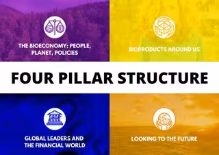 Todos los programas y actividades del Foro están alineados con la estructura de cuatro pilares, incluidas todas las mesas redondas y la Declaración anual. Esta estructura de cuatro pilares garantiza que todas las partes interesadas en la bioeconomía circular tengan voz y una plataforma.