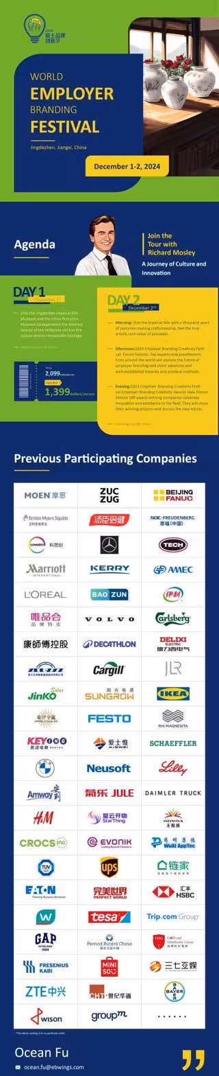 - El World Employer Branding Festival se llevará a cabo en China del 1 al 2 de diciembre. Únase a nosotros en un viaje inolvidable de inspiración y reconocimiento.