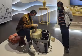 An artist shows plastic forming, one of porcelain making skills, in Gao'an Yuan Dynasty blue and white porcelain Museum, Nov. 20, 2021. - XINHUA SILK ROAD/PR NEWSWIRE