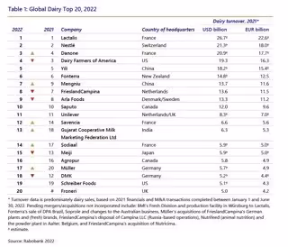 El Informe Rabobank de este año destaca una competencia aún más intensa en toda la industria. Debido a la adquisición de Ausnutria Dairy y al fuerte crecimiento de las ventas internas, Yili se ha convertido en el primer productor de lácteos de Asia en superar los 100.000 millones de RMB (14.850 millones de dólares estadounidenses) en facturación.