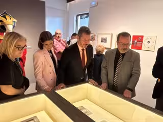 El consejero de Cultura del Gobierno Regional, Mariano De Paco Serrano, y la alcaldesa complutense, Judith Piquet han visitado la exposición, comisariada por Javier Huerta Calvo, sobre el primer responsable del Teatro Español Universitario (TEU), que creó a imagen y semejanza de La Barraca de Federico García Lorca, su maestro.