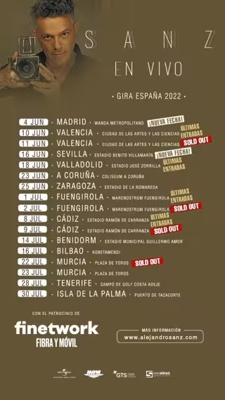 De este modo, y tras dos años de espera, Sanz regresa a los escenarios de España con un nuevo espectáculo en el que repasará sus grandes éxitos y los temas incluidos en 'SANZ', su nuevo álbum de estudio.