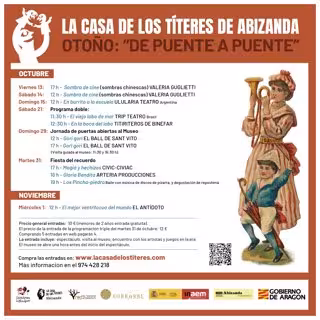 El precio de las entradas asciende a diez euros y los menores de dos años tienen la entrada gratuita, han indicado desde La Casa de los Títeres de Abizanda en una nota de prensa.