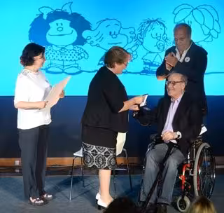 La presidenta de Chile, Michelle Bachelet, ha entregado al dibujante argentino y padre de 'Mafalda', Joaquín Lavado, conocido como 'Quino' la Orden al Mérito Artístico y Cultural Pablo Neruda este jueves 15 en el marco de una exposición en el país dedicada a su obra.