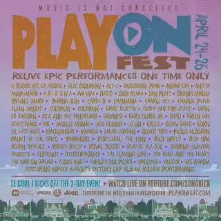 Como parte de este evento en streaming de tres días, PlayOn promete actuaciones (incluyendo actuaciones en Coachella, Sydney Opera House, Lollapalooza, Apollo Theater, Bonnaroo, The O2 Arena, Primavera Sound, Red Rocks Amphitheater, Rock In Rio, Global Citizen Festival, y muchos más) a los fans de la música hambrientos de las experiencias comunales del directo.