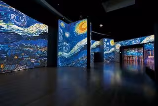 Los cuadros del artista no están expuestos en una pared. No es una exposición convencional en la que se mira La noche estrellada, por ejemplo, y luego se pasa a Los girasoles. No. En 7.000 metros cuadrados las imágenes y las animaciones envuelven al espectador.