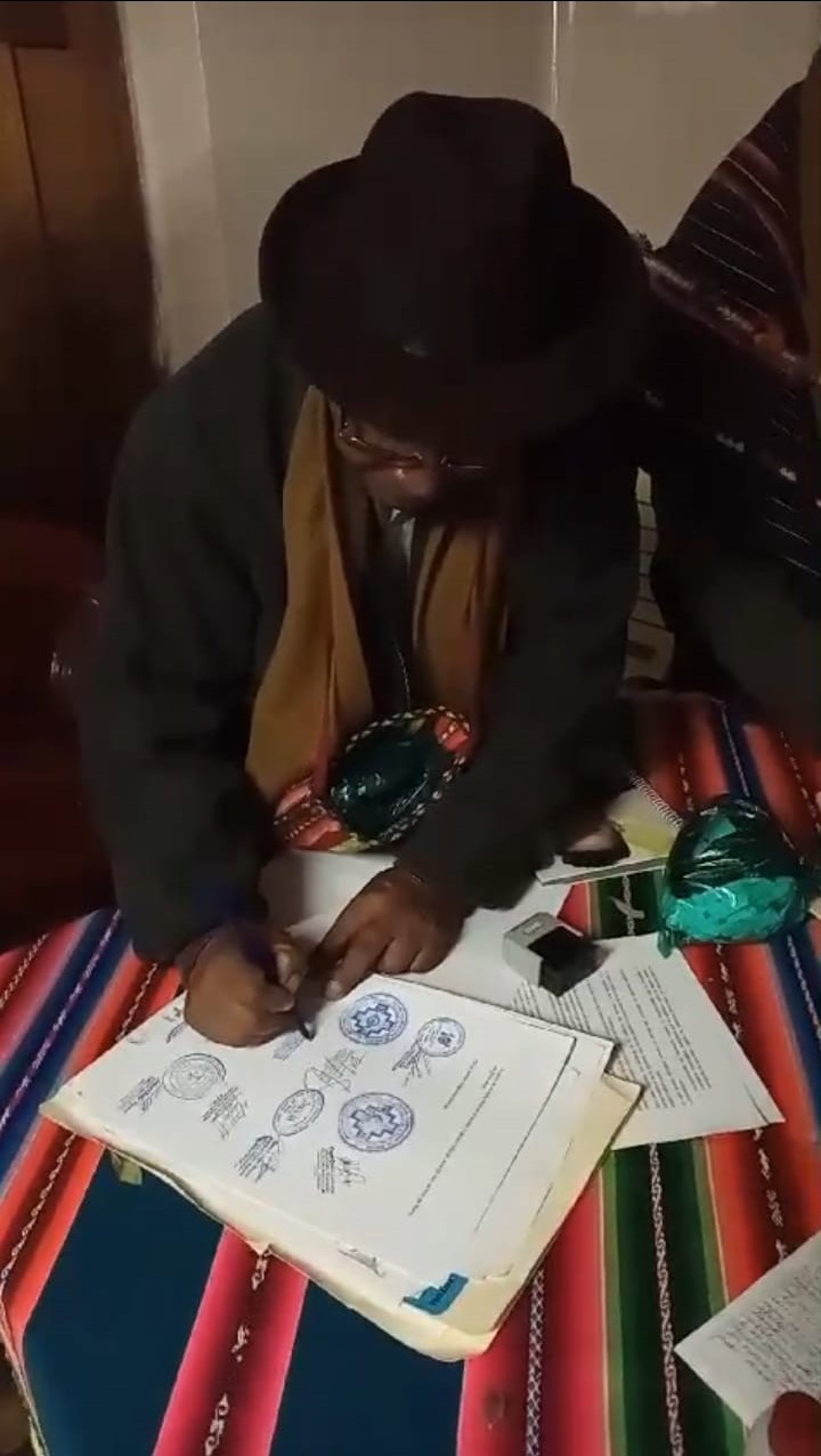 Autoridades de la nación Killakas firmando un acuerdo relativo al galeón San José - JUAN REVOLLO