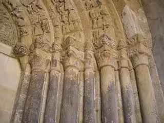 Su robustez arquitectónica contrasta con la delicadeza de la decoración figurada de sus dos portadas esculpidas de estilo románico y atribuidas tradicionalmente al 'Maestro de Agüero' o 'Maestro de San Juan de la Peña'.