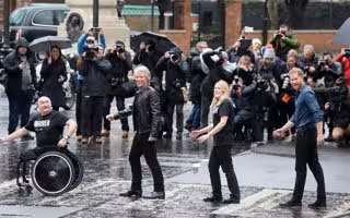 Prince Harry, Duke of Sussex (R) and singer Jon Bon Jovi pose with Invictus Games representatives on the iconic Abbey road crossing on February 28, 2020 in London, England. (Photo by Chris Jackson/Getty Images) - 2020 GETTY IMAGES / CHRIS JACKSON