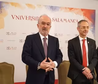 Muñoz Machado (i) junto al rector de la USAL, Ricardo Rivero (d), en la institución académica salmantina.