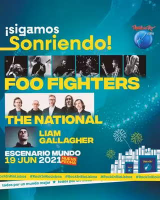 Rock in Rio Lisboa confirma a Foo Fighters, The National y Liam Gallagher para la edición 2021, manteniendo así la alineación inicialmente prevista para el 21 de junio de 2020, en el escenario mundial (escenario principal).