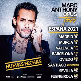 Debido a la situación actual, ante las "restricciones impuestas por las autoridades sobre la celebración de espectáculos y la libre circulación de personas, así como la especial preparación requerida", Marc Anthony reprograma 'Opus Tour' a 2021.