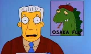 Esta teoría se basa en el episodio 'Marge encadenada' (1993), donde aparece una enfermedad llamada la 'gripe de Osaka'. Durante este episodio, los habitantes de Springfield se contagian de una extraña enfermedad vírica cada vez que abren un paquete proveniente de China.