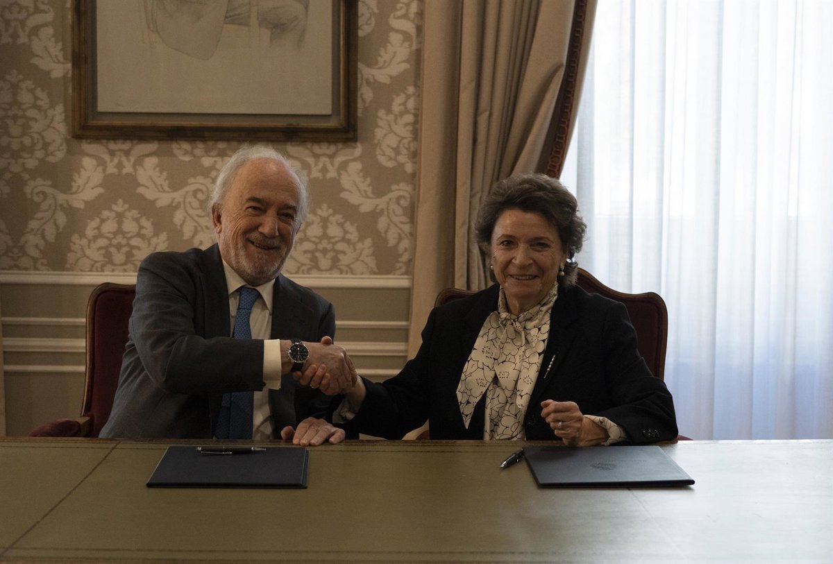 La rectora de CUNEF Universidad, Ana I. Fernández, y el director de la Real Academia Española y presidente de la Asociación de Academias de la Lengua Española (ASALE), Santiago Muñoz Machado, han firmado un convenio de colaboración para el estudio, la docencia y la investigación relativos al lenguaje claro.