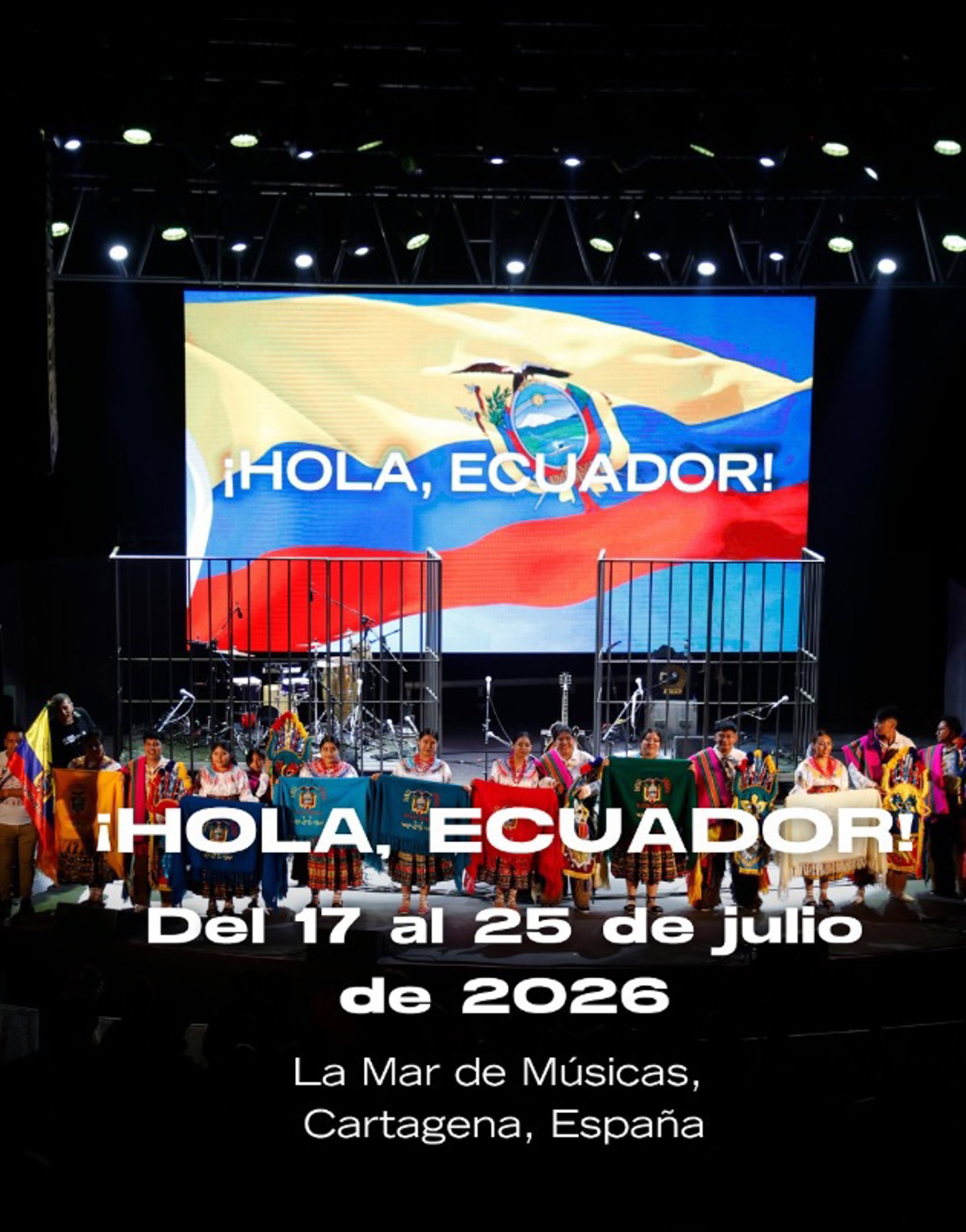 La Embajadora del Ecuador en España, Wilma Andrade, anunció la participación del Ecuador como país invitado del festival La Mar de Músicas, que se celebrará en Cartagena (Murcia), del 17 al 25 de julio del 2026.