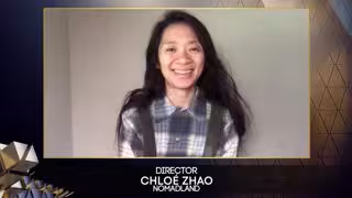 "Nos gustaría dedicar este premio a la comunidad nómada que tan generosamente nos recibió en sus vidas. Compartieron con nosotros sus sueños, sus luchas y su profundo sentido de dignidad. Gracias por mostrarnos que el envejecimiento es una parte hermosa de la vida, un viaje que todos deberíamos apreciar y celebrar", señaló Zhao, nacida en China, que se convirtió en la segunda mujer en ganar el premio a la mejor directora y la primera mujer de color. La primera mujer ganadora fue Kathryn Bigelow, quien tomó el gong en 2010 por 'En tierra hostil'.