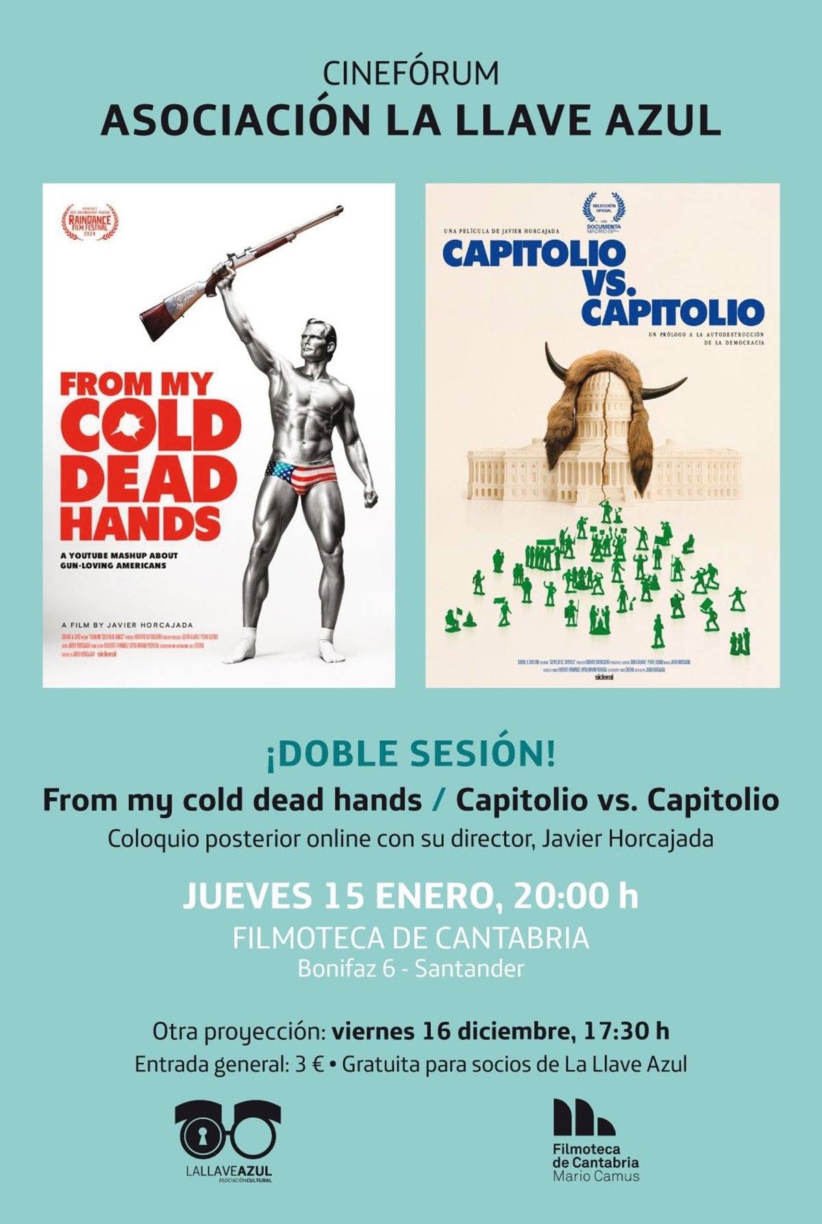 Coincidiendo con el quinto aniversario del asalto al Capitolio, se verá el documental inédito en Cantabria 'Capitolio vs. Capitolio' (2025), que reúne imágenes grabadas por los propios asaltantes, y 'From My Cold Dead Hands' (2024), elaborado a partir de material de Youtube subido por amantes de las armas. Ambos están dirigidos por Javier Horcajada.
