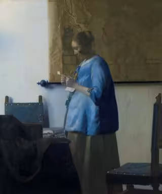 En 2016, la exposición en el Museo Meadows Dalí 'Poética de lo pequeño, 1929-1936' arrojó nueva luz sobre la larga obsesión de Dalí por la obra de Vermeer. La próxima muestra analiza la naturaleza de la imitación artística al reunir juntas Mujer de azul leyendo una carta de Vermeer y La imagen desaparece de Dalí.