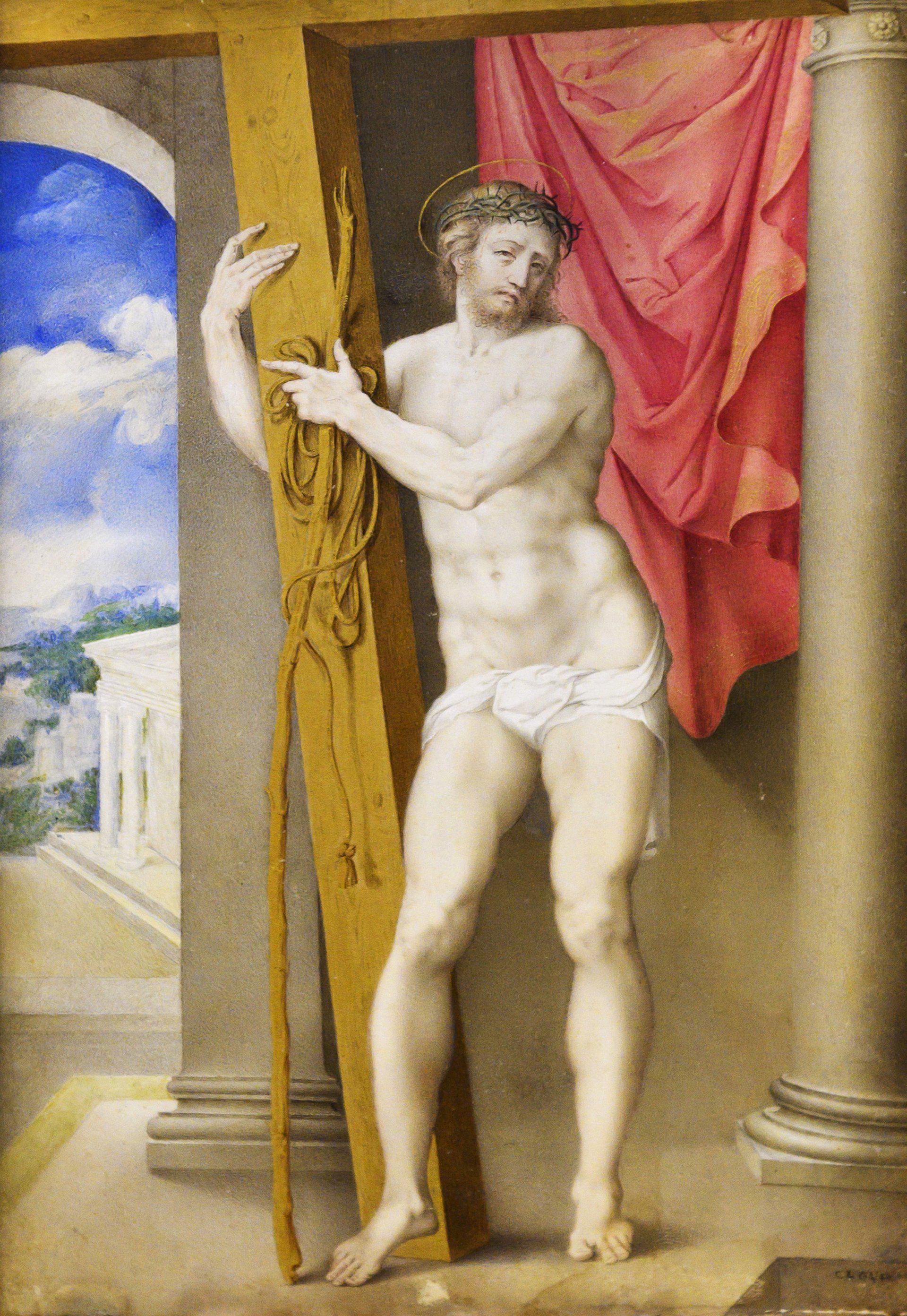 El 'Cristo resucitado' fue posiblemente encargado por el cardenal Alessandro Farnesio a Giulio Clovio quien lo finaliza sobre 1550. Para su ejecución, el artista se inspiró en una escultura de Miguel Angel, del mismo título, que se conserva en Santa Maria Sopra Minerva, Roma.