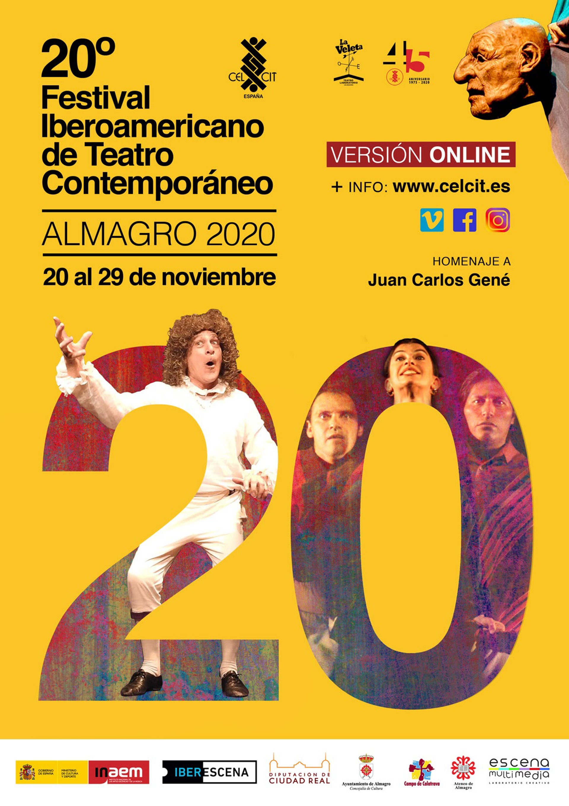 La vigésima edición del Festival Iberoamericano de Teatro Contemporáneo de Almagro, organizado por CELCIT-España, tendrá lugar del 20 a al 29 de noviembre con una programación en streaming en aras de adaptarse a las coyunturas planetarias actuales.