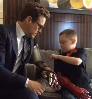 El brazo biónico que recibió el joven fue creado por el estudiante de ingeniería Manero, quien construye y dona extremidades biónicas creadas en impresoras 3D a niños de todo el mundo, y al que el actor agradeció su implicación. "Gracias a Albert Manero, One Note y Marvel", apuntó el Downey Twitter.