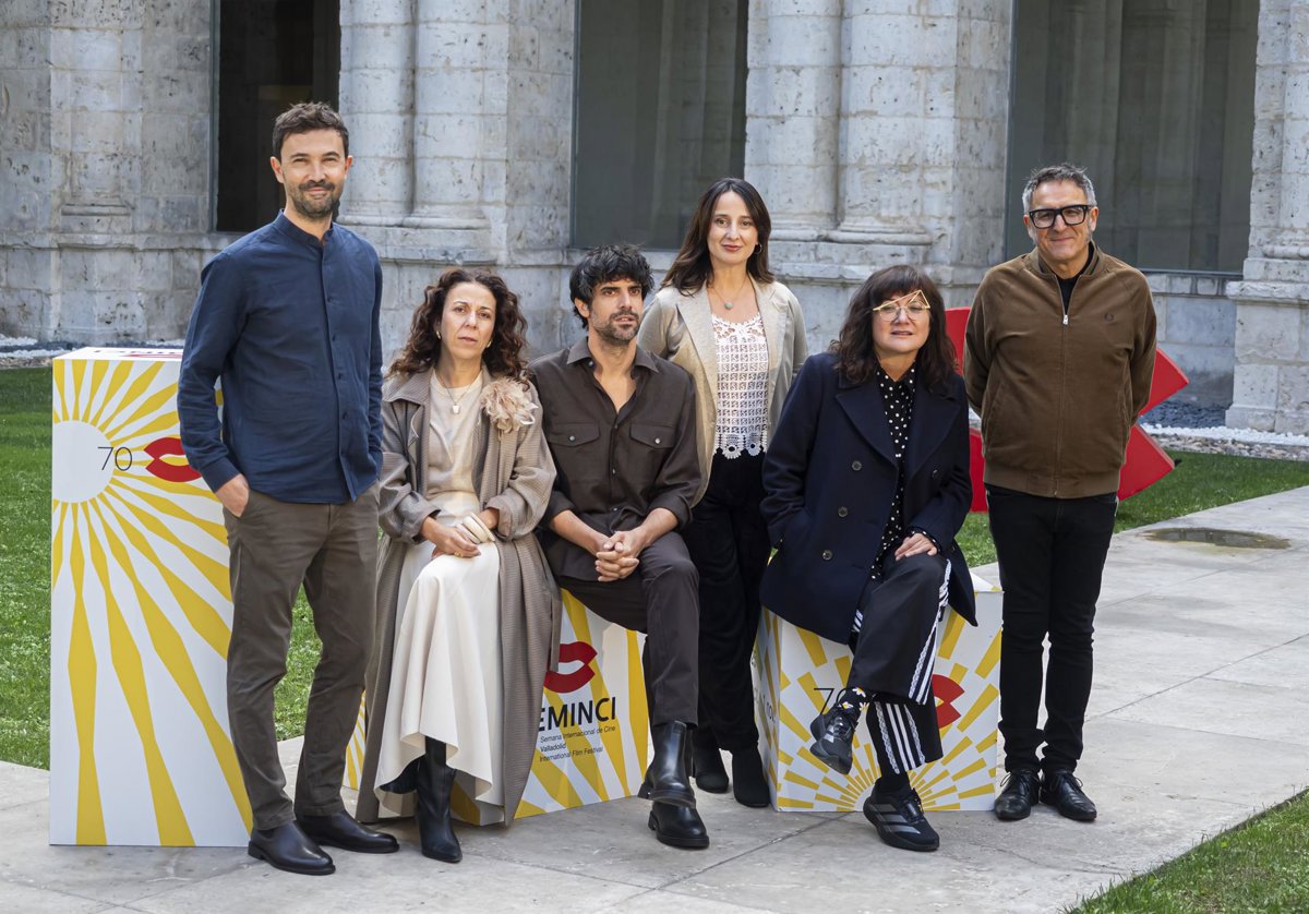 Archivo - (I-D) El productor Alex Lafuente; la productora Sandra Hermida; el actor; Francesco Carril; la productora Marisa Fernández Armenteros; la directora Isabel Coixet, y el director de la Seminci, José Luis Cienfuegos, posan durante la presentación - Photogenic/Claudia Alba - Europa Press - Archivo