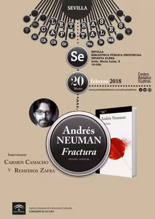 La Consejería de Cultura, a través del Centro Andaluz de las Letras (CAL), prosigue este martes la programación del ciclo 'Letras capitales' con la presentación del nuevo libro del escritor argentino Andrés Neuman 'Fractura', publicado por la editorial Alfaguara. La cita literaria, que tendrá lugar en la biblioteca Infanta Elena a las 19,30 horas, estará presentada por la poeta Carmen Camacho y la escritora Remedios Zafra.