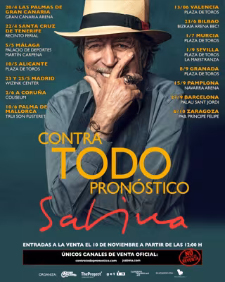 Las entradas estarán a la venta el próximo jueves 10 de noviembre a las 12.00 horas a través de 'contratodopronostico.com' y 'jsabina.com'.