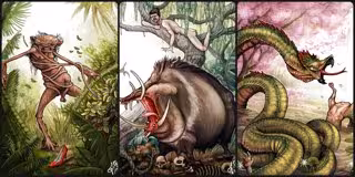 El segundo hijo de Kerana tiene patas de loro y cuerpo de serpiente que ronda por los esteros y protege a los anfibios. Su guarida está cerca de los lugares húmedos y las flores. Las historias indígenas relatan que sus graznidos se escuchan desde lejos aunque posea lengua bífida.