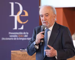 El director de la Real Academia Española, Santiago Muñoz Machado, interviene durante la presentación de la versión 23.8.1 del Diccionario de la lengua española, en la Real Academia Española, a 15 de diciembre de 2025, en Madrid (España). - Marta Fernández - Europa Press