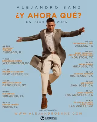 "Sanz llevará su inconfundible propuesta musical a los escenarios más emblemáticos de Estados Unidos, donde promete una experiencia íntima, poderosa y llena de emoción", señala la agencia artística Seitrack.