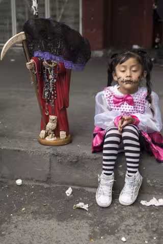 La exposición consta de una selección de 59 fotografías realizadas a lo largo de cinco años por Vidal Coy, en las que se recogen imágenes del culto cotidiano a la Santa Muerte en los suburbios de Ciudad de México. Una devoción al margen de la Iglesia Católica, pero practicada por católicos, que ha ganado numerosos adeptos desde comienzos del presente siglo.
