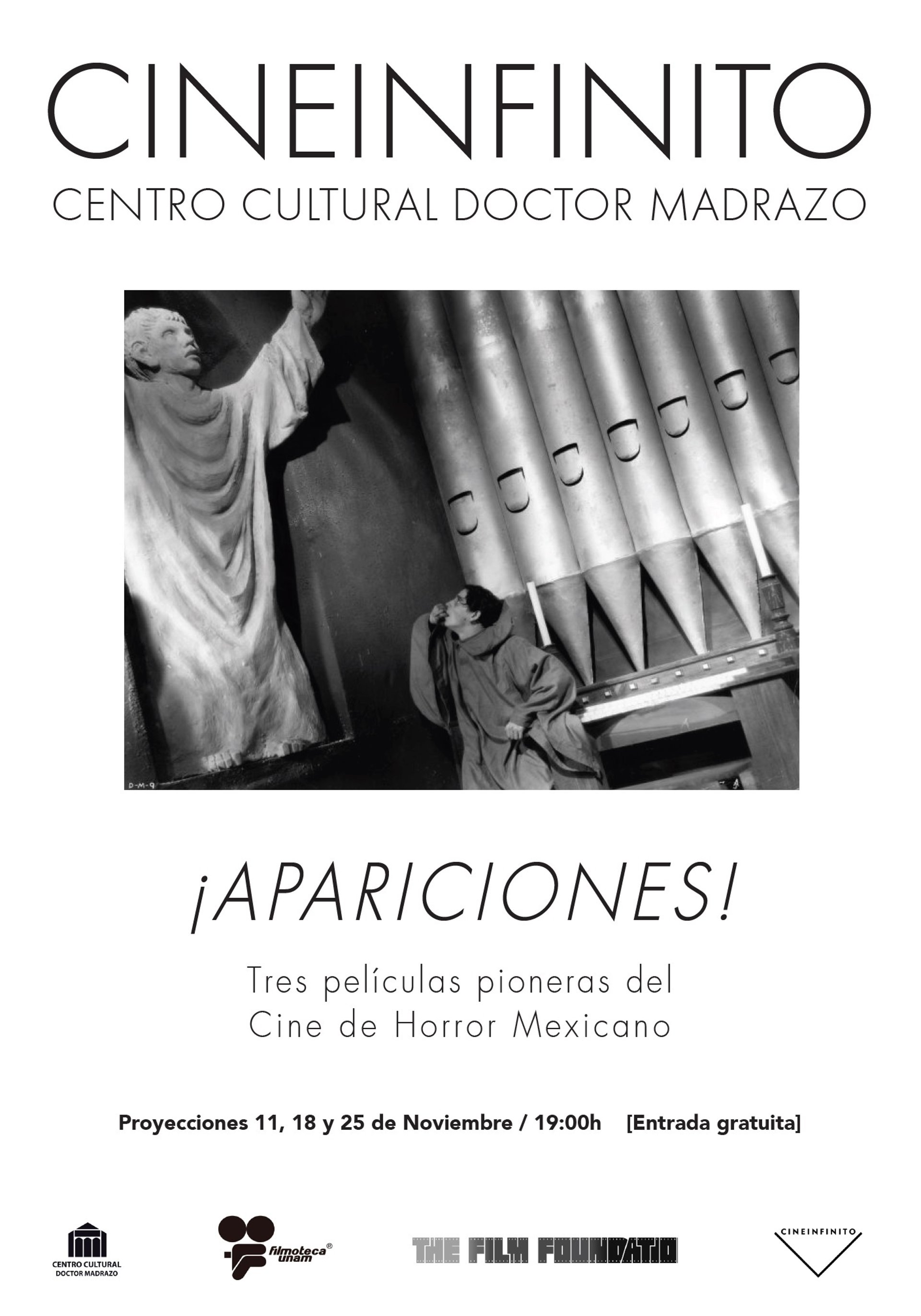 La actividad está coordinada por Cineinfinito y consta de tres proyecciones los viernes 11, 18 y 25 de noviembre a las 19 horas: 'La llorona' (1933), 'El fantasma del convento (1934)' y 'Dos monjes', respectivamente. Todas son con entrada libre hasta completar aforo.