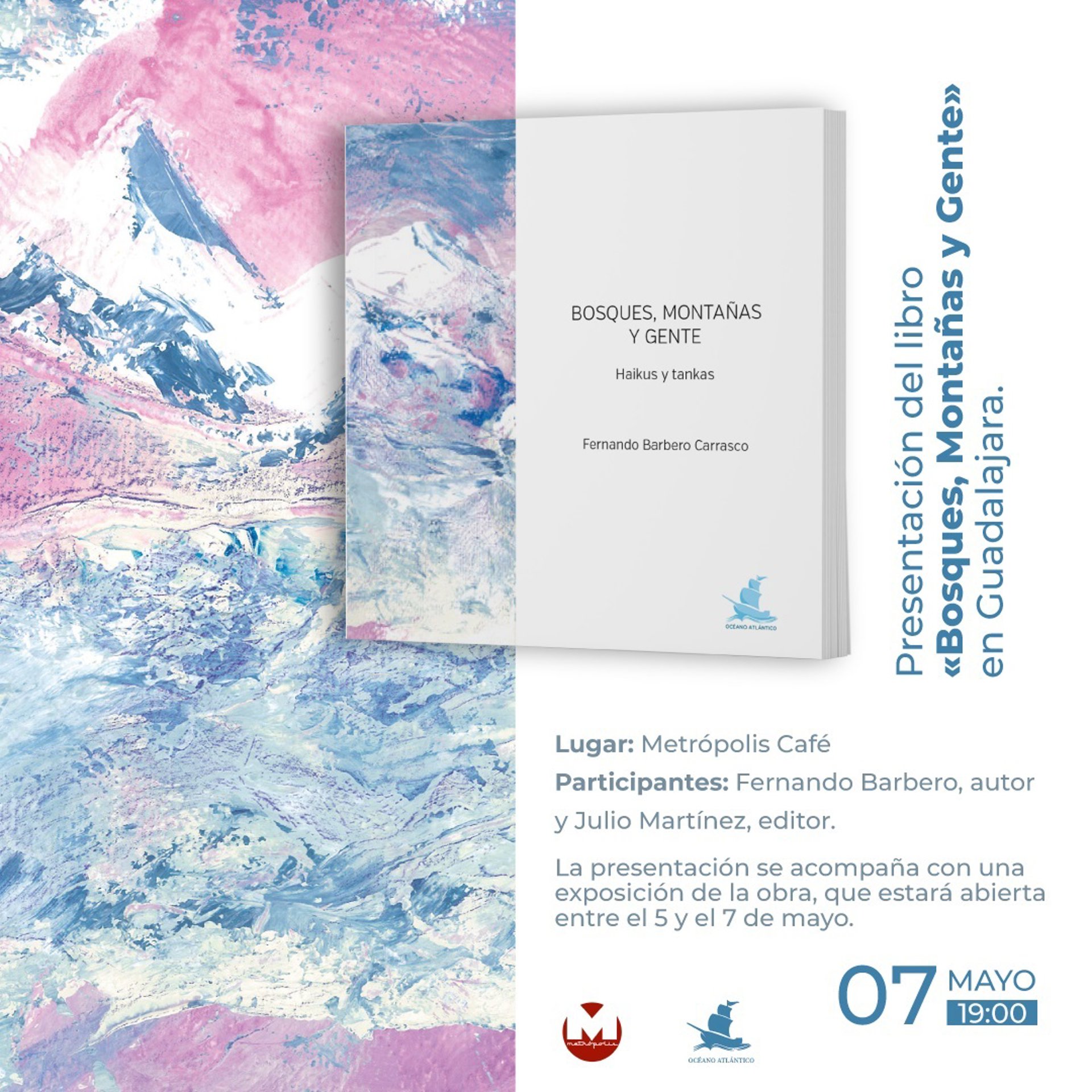 Este sábado, 7 de mayo, a partir de las 19.00, se presentará 'Bosques, Montañas y Gente', un trabajo de la editorial hispano- mexicana Océano Atlántico Editores. Se trata de un poemario ilustrado, protagonizado por los haikus y tankas de Fernando Barbero.