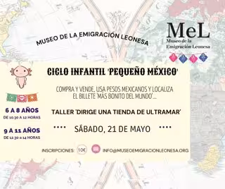 El Museo de la Emigración Leonesa (MeL) ofrecerá este sábado 21 de mayo en sus instalaciones el taller 'Dirige una tienda de ultramar' que se enmarca en el ciclo 'Pequeño México' y que está destinado para los niños de seis a once años en el que podrán regentar hasta 20 puesto de comestibles y localizar el billete "más bonito del mundo".