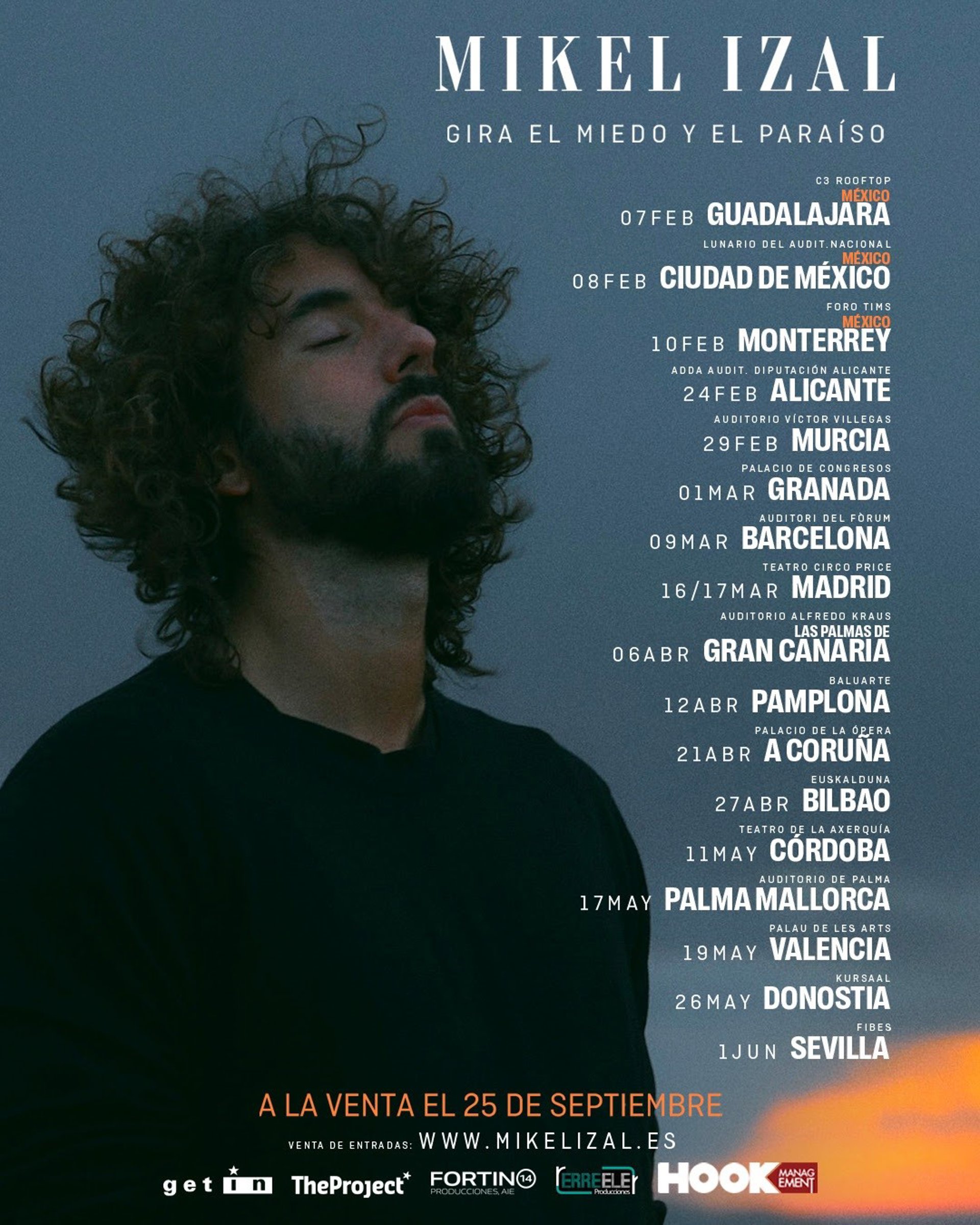 Mikel Izal, exvocalista del grupo Izal (que se despidió de los escenarios en 2022), ha anunciado su primera gira en solitario, 'El miedo y el paraíso', con 15 fechas en España y tres en México de febrero a junio de 2024, con las canciones del disco que publicará en noviembre.