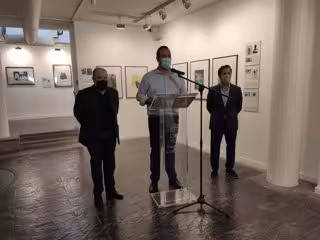 Inauguración de  'El grabado con láser. Homenaje al Museo Etnográfico de Castilla y León' en La Salina con presencia de José Fuentes, David Mingo y Antonio Navarro, de izquierda a derecha