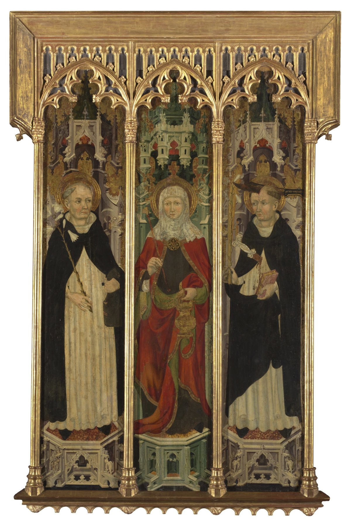 Tabla principal del retablo de Santa Marta, Santo Domingo y San Pedro Mártir. Lluis Borrasa